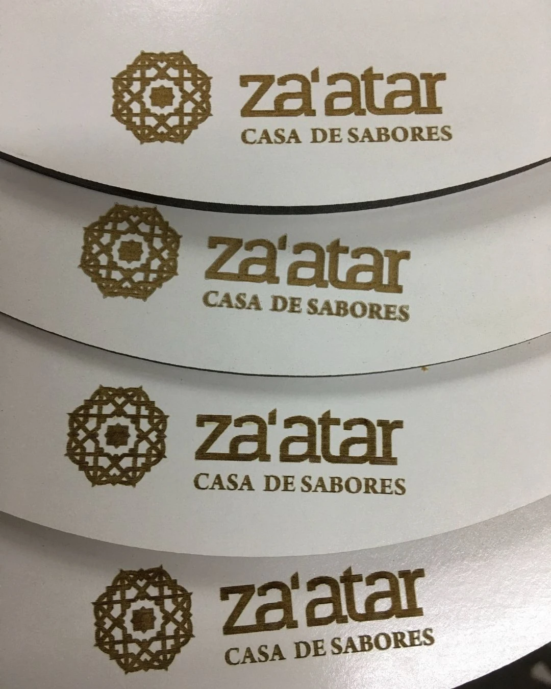 Tabla de fibrofácil revestida con melamina blanca apta para alimentos como picadas, tortas, entre otros. Con grabado personalizado del logo de la empresa